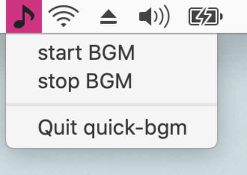 作ったもの macOSのメニューバーに常駐し、BGMを流せるだけのアプリ 起動するとメニューバーに常駐 start BGM で音楽開始 stop BGM で音楽停止 Quit でアプリ終了 https://github.com/miukoba/quick-bgm 必要な知識 まず公式の Quick Start Guide をやった、…